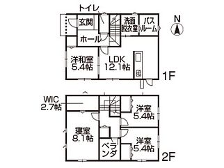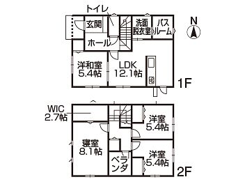 1F/LDK12.1、和5.4 2F/洋8.1、5.4×2、WIC2.7